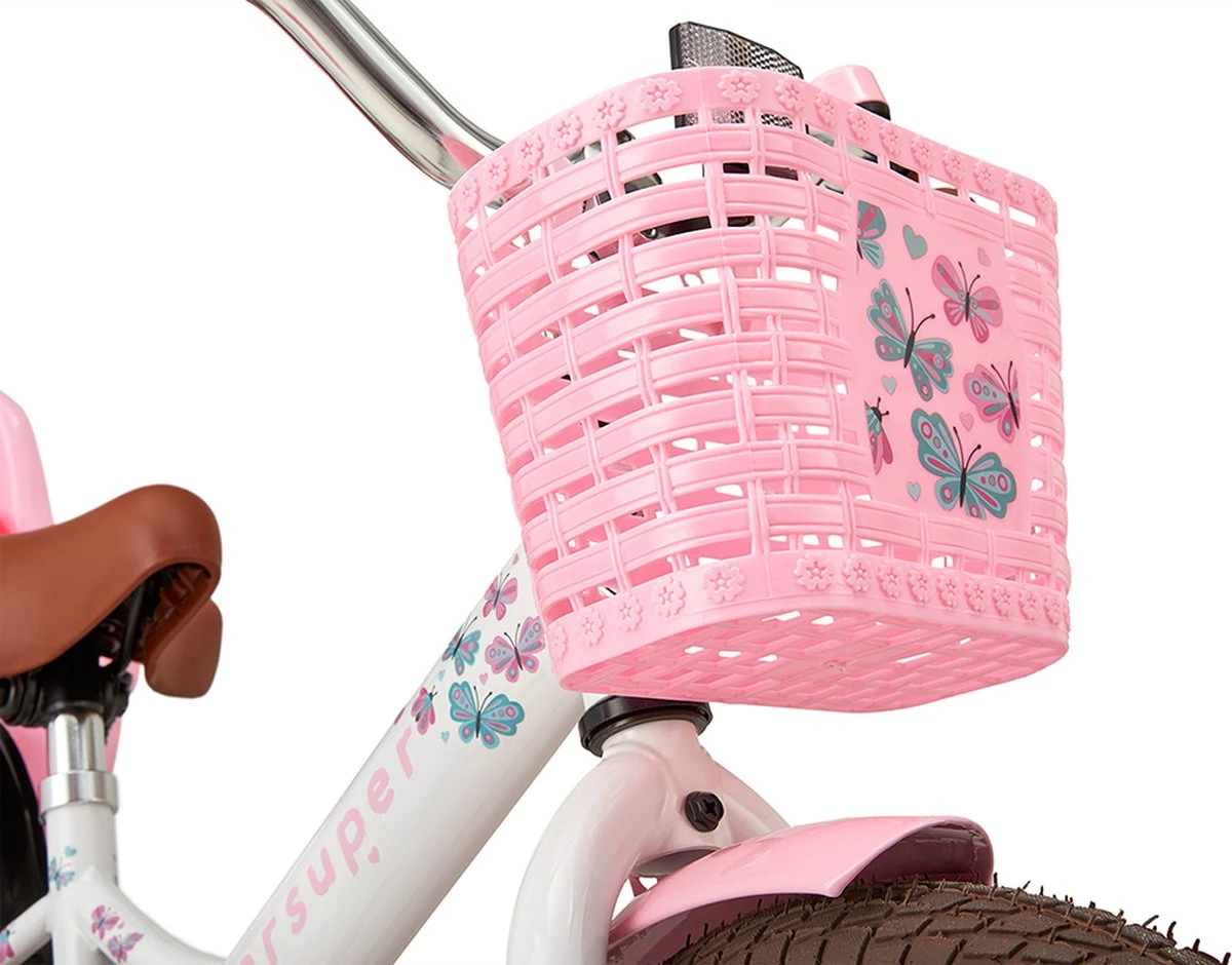 Viva la magic! Terwijl de slingers wapperen in de wind, dragen de vlinders op deze stevige fiets je door jouw magische wereld. Met het zitje neem je jouw maatje gemakkelijk mee op al je verre reizen. Je spulletjes kunnen in het mandje aan het stuur. The world is #supersuper!